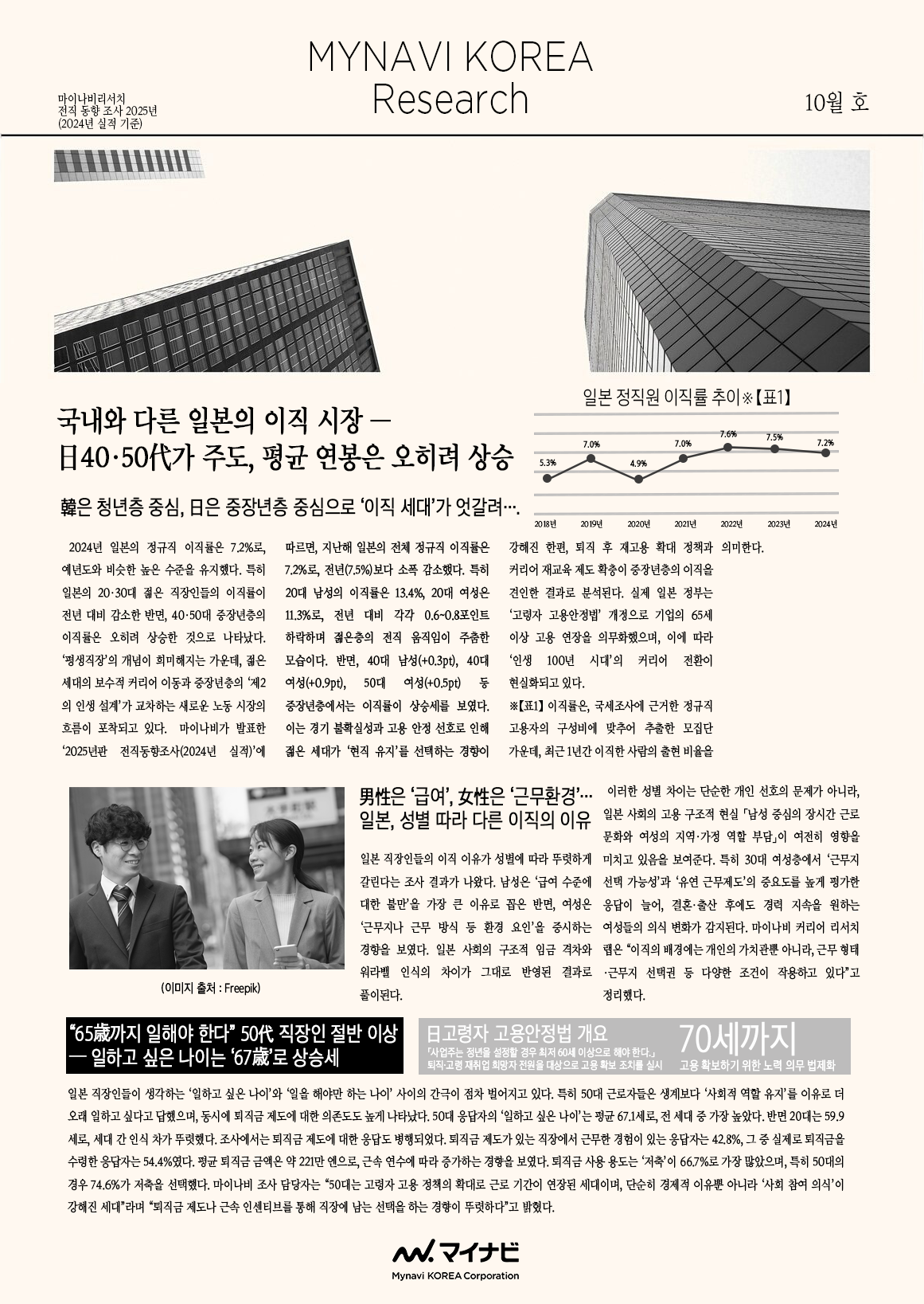 [마이나비 리서치] 일본의 이직 동향 조사(2025년)