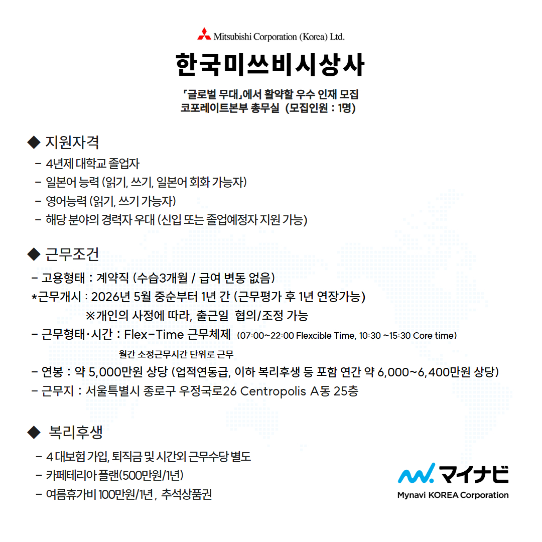 2026년도 한국미쓰비시상사 총무 담당자 채용